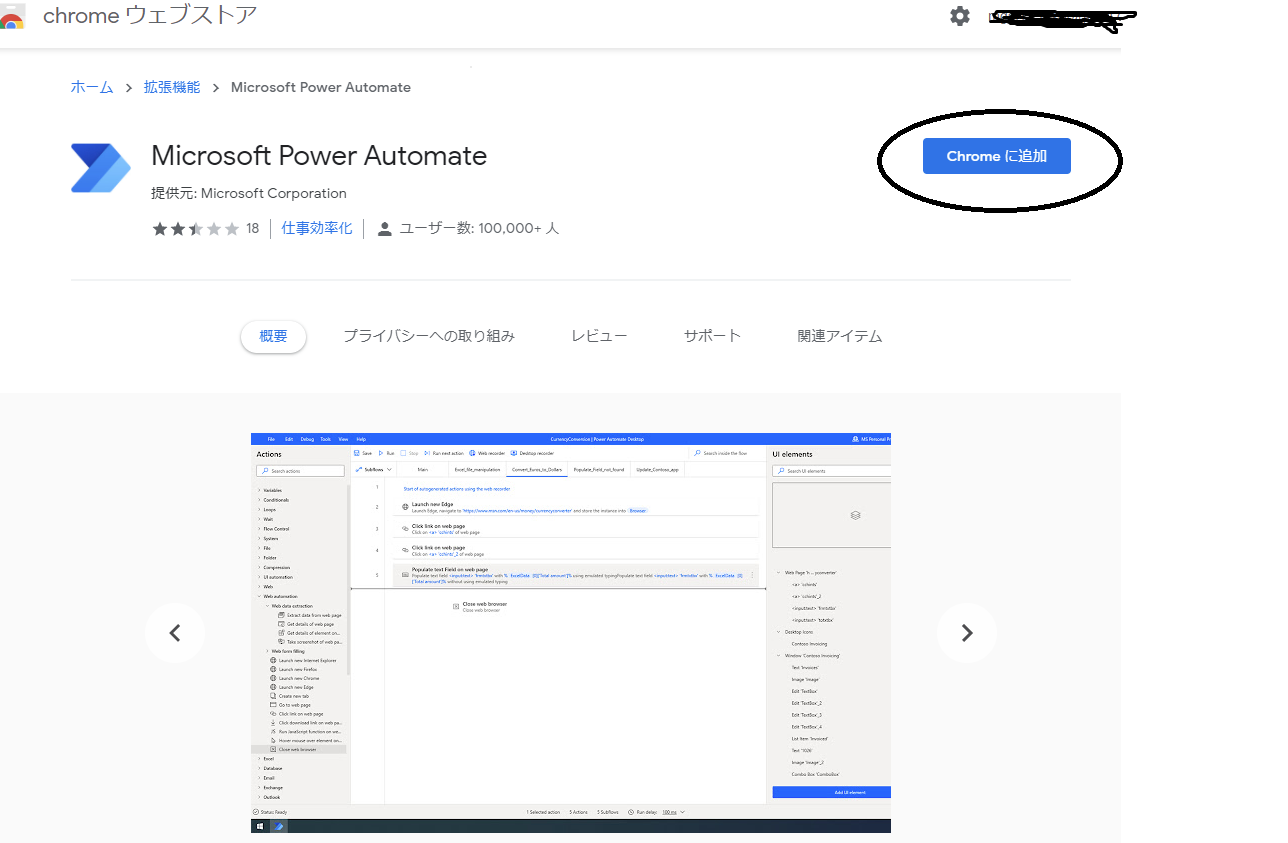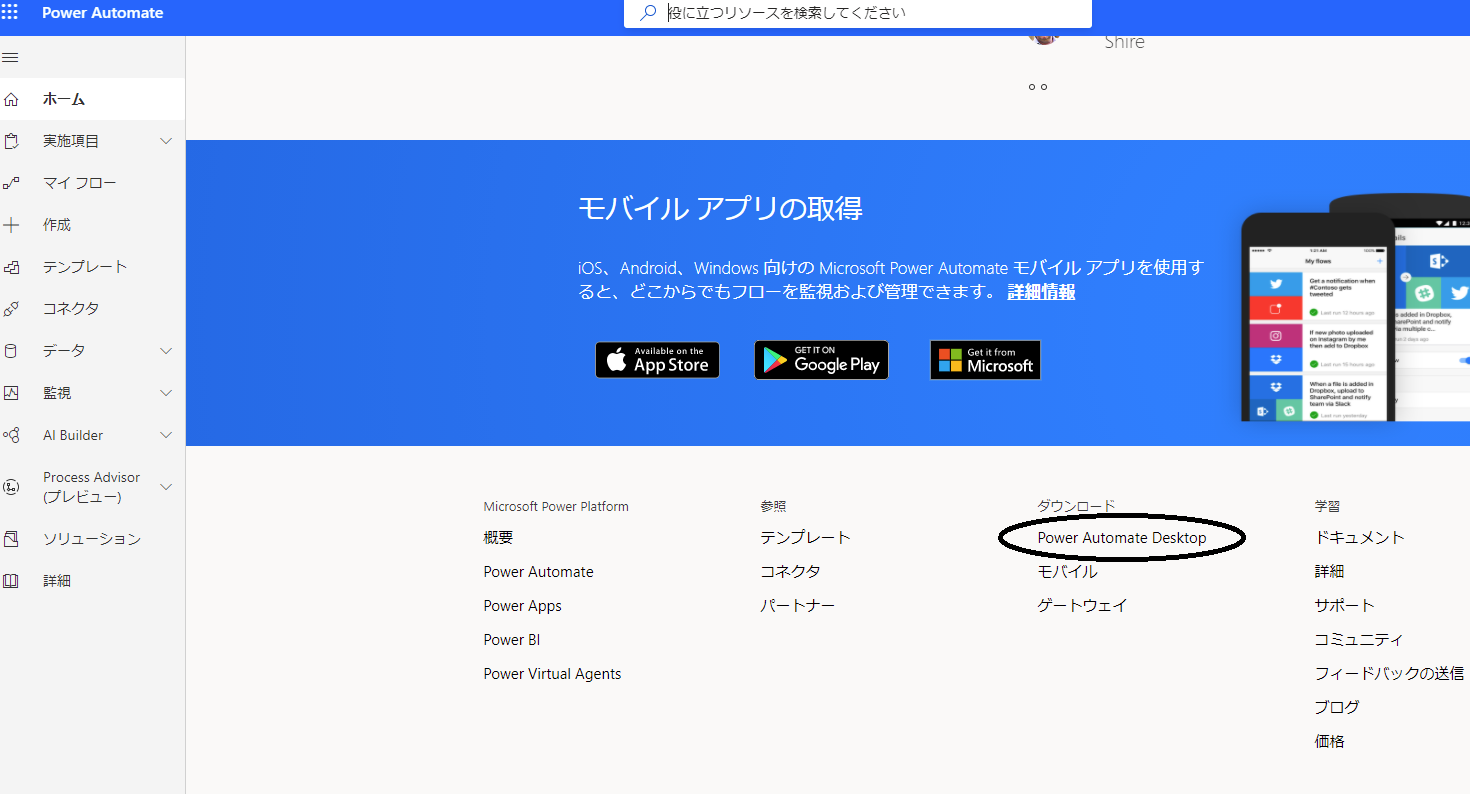 ページの下の方にある「ダウンロード Power Automate Desktop」をクリック