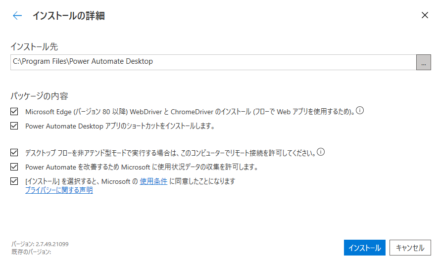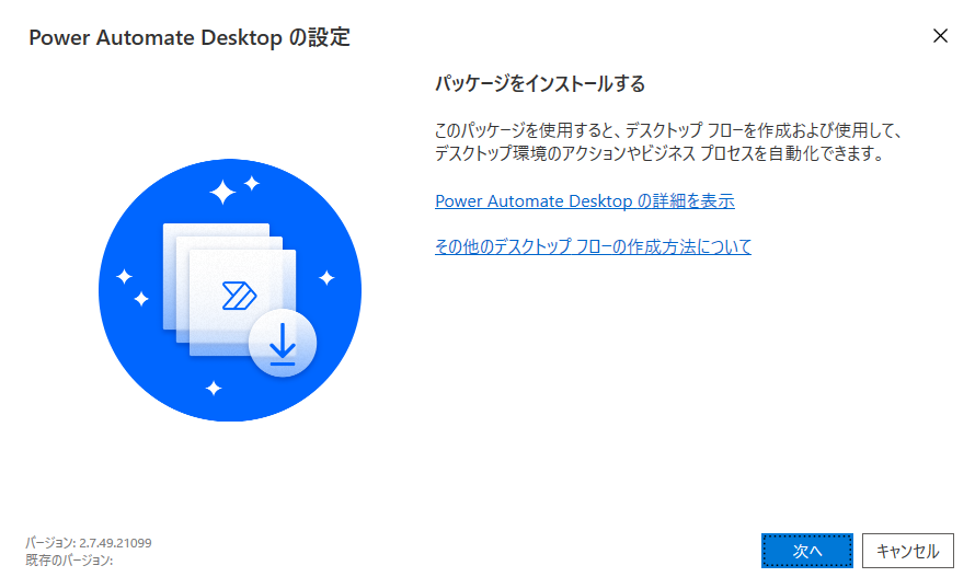 ダウンロードした「Setup.Microsoft.PowerAutomateDesktop.exe」を実行