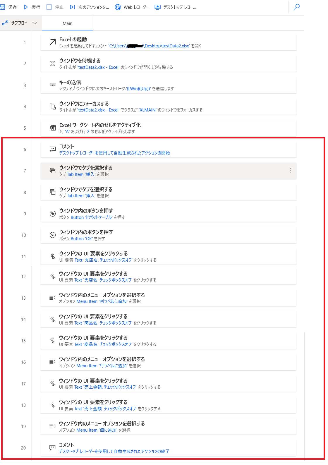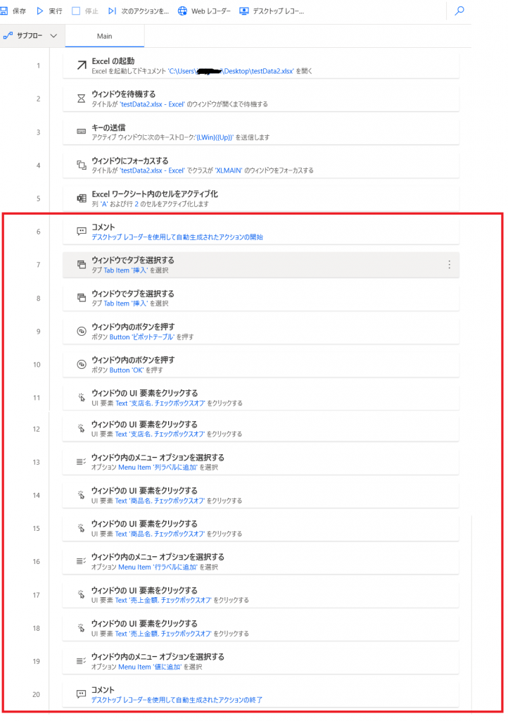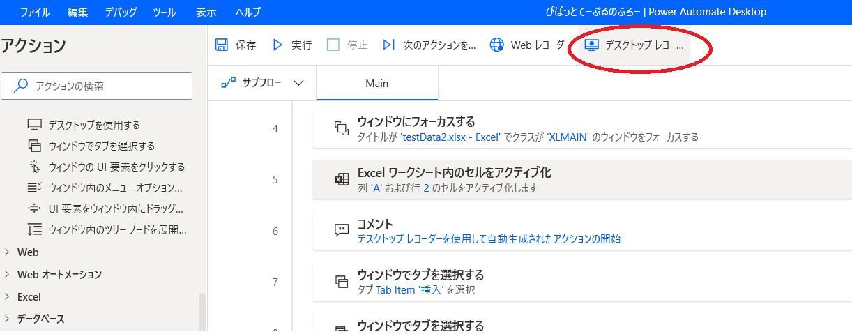 重要:赤い枠が表示されたらクリック → レコーダーに記録されるので、操作を記録していく。