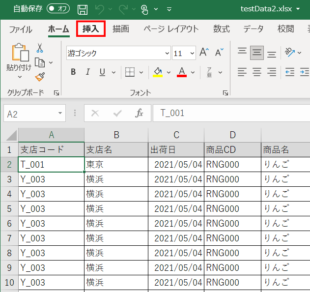 ・エクセルのメニューバーの挿入は僕のマシンではなぜか1回目のクリックでは反応しないので2回押した。
