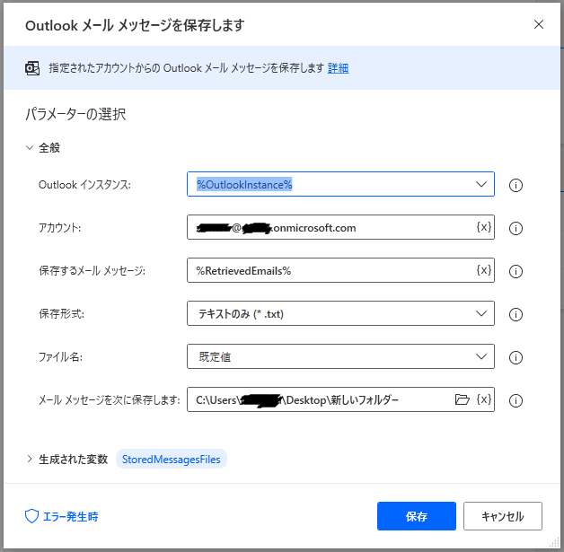 Outlookメールメッセージを保存します