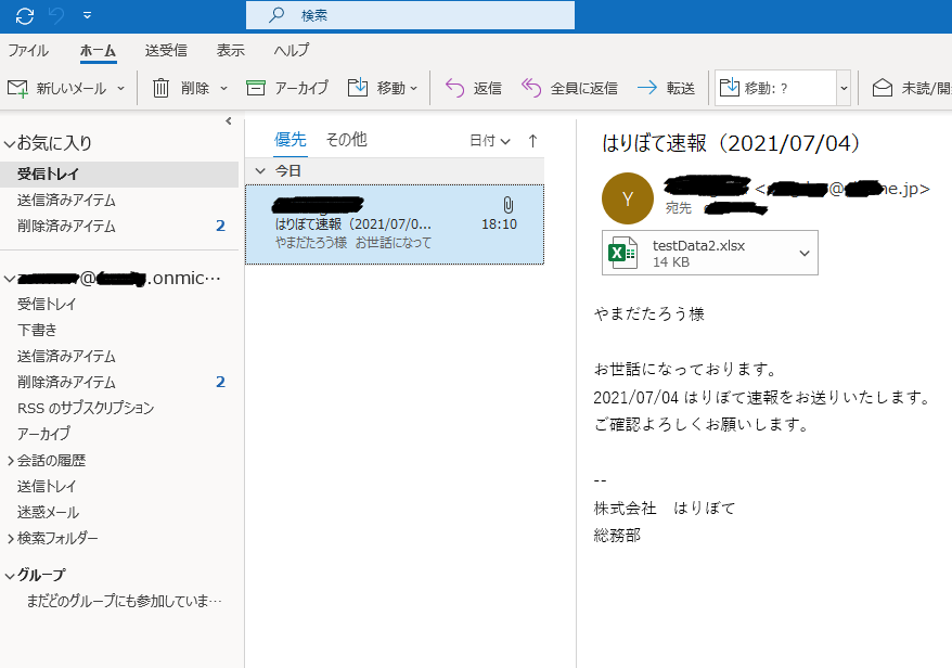 メール本文と添付ファイルがしていしたフォルダに保存されました!