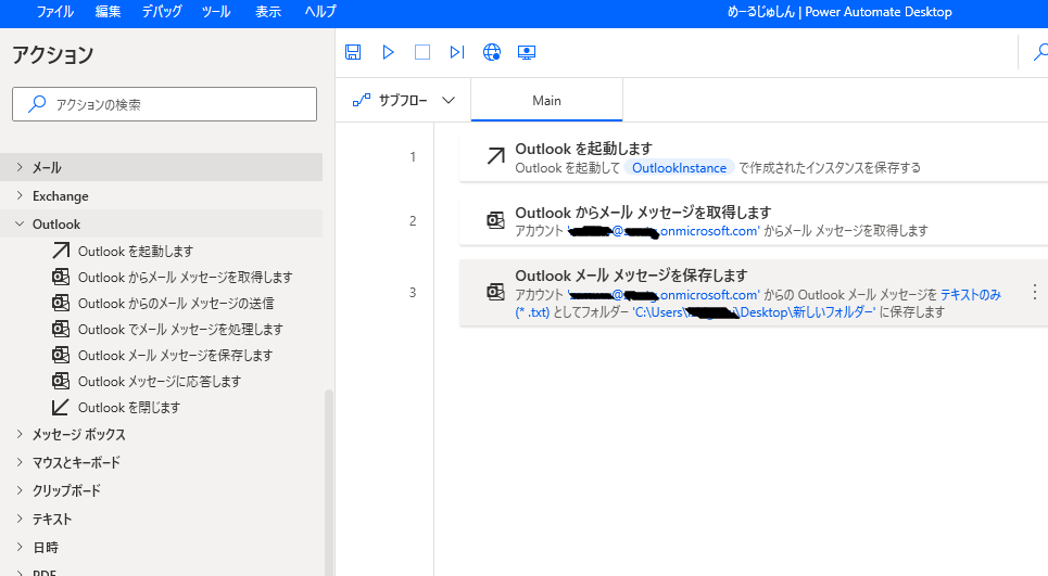 Outlookからメールメッセージを取得します