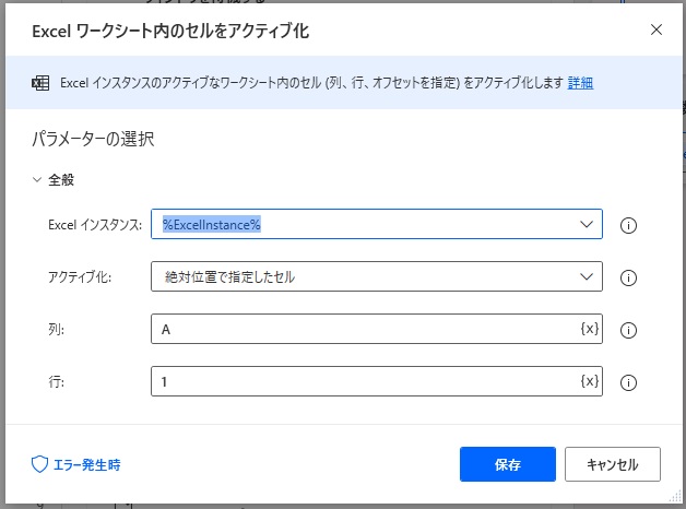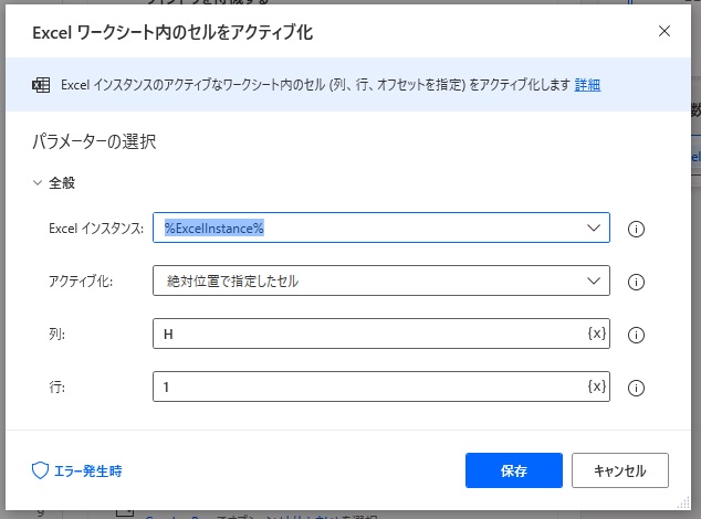 Excelワークシート内のセルをアクティブ化