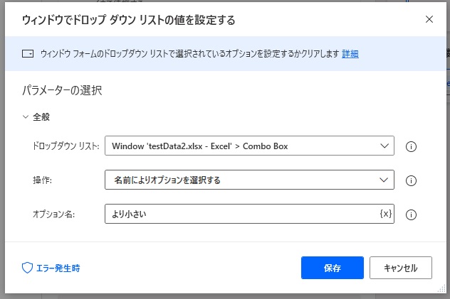 ウィンドウでドロップダウンリストの値を設定する