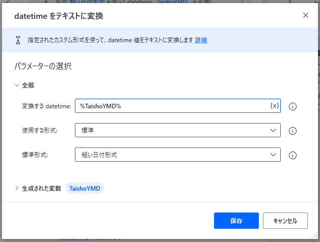 日付型を文字列に変換。