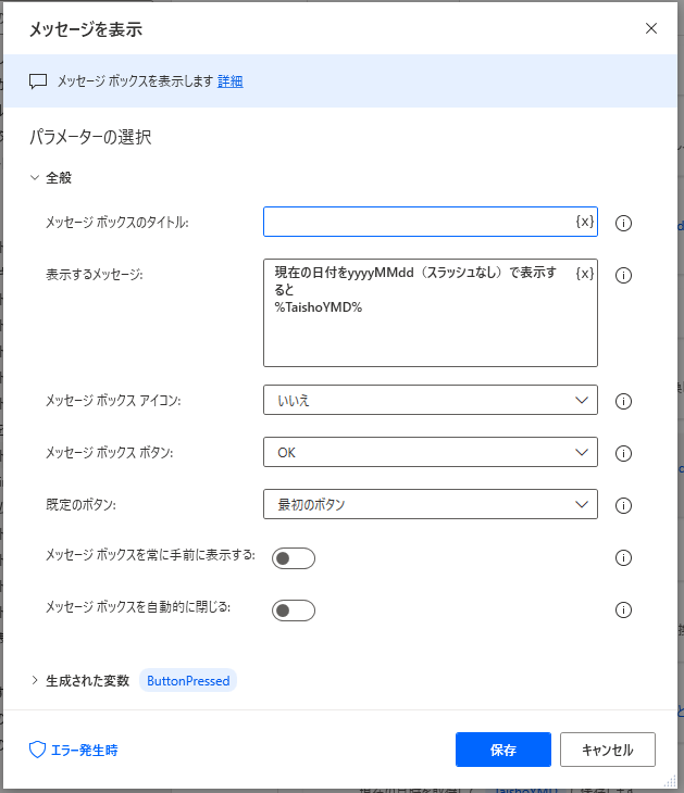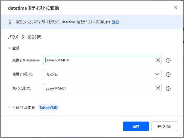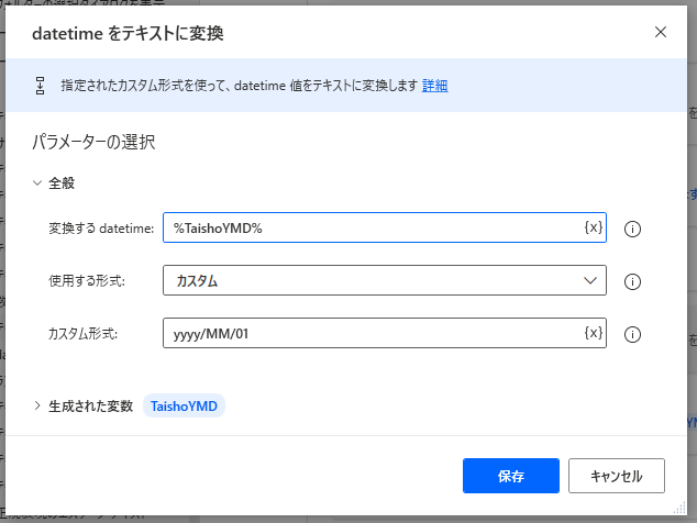 カスタム形式でyyyyMMdd