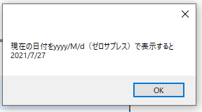 現在の日付をyyyy/M/d(ゼロサプレス)で表示