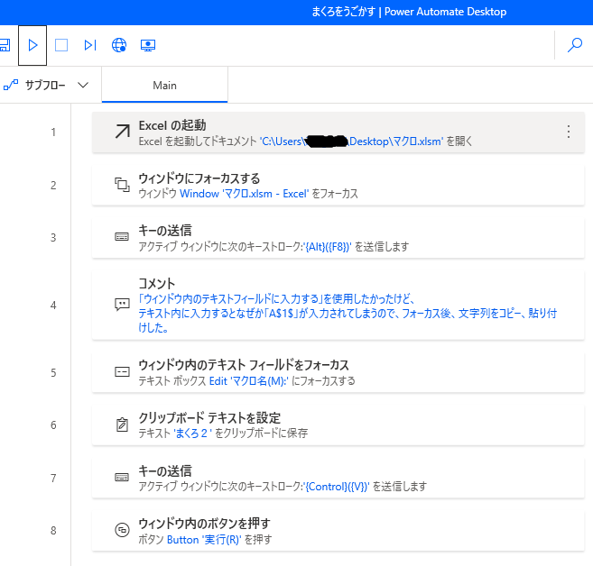 マクロを実行するアクションがあれば便利なのですが、今のところないのでゴリゴリ作りました。