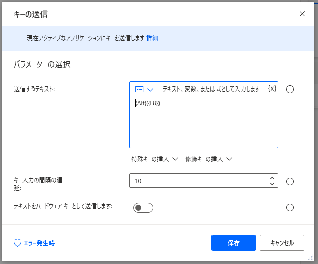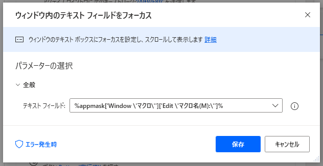 「ウィンドウ内のテキストフィールドに入力する」を使用したかったけど、