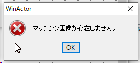 枠は見つかったが対象の画像が見つからなかった場合、「マッチング画像が存在しません。」が表示される。