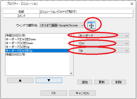 ①対象の枠を決める(どのウィンドウでキーボード入力するか) ※下図の✠こんなようなボタン
