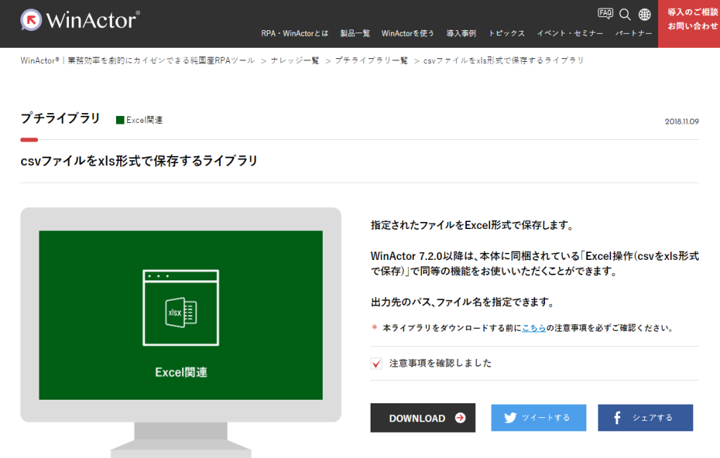 ↓一応、プチライブラリで、CSVファイルをExcelファイルで保存するライブラリが用意されている。