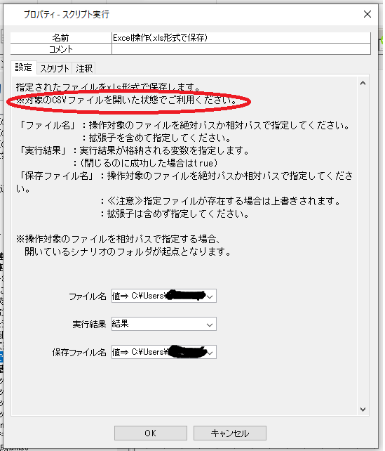 中身は「※対象のCSVファイルを開いた状態でご利用ください。」とある。