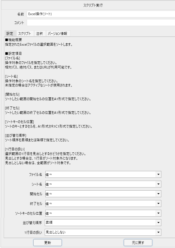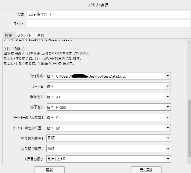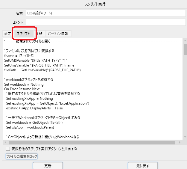 worksheet.range(targetRange).Sort cell2,order2'※逆転させる