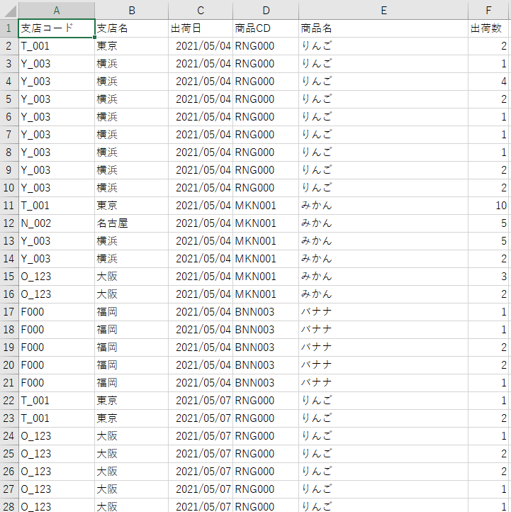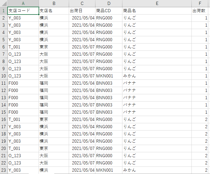 ↓ こういうExcelがあったとする。