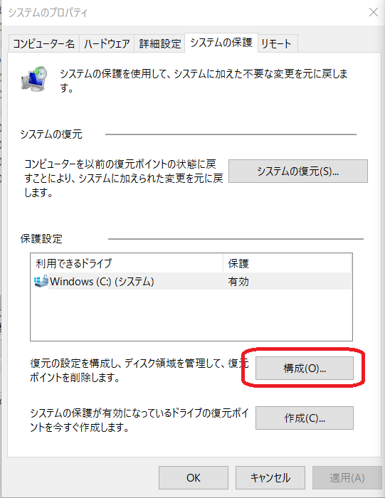 システムのプロパティを開く