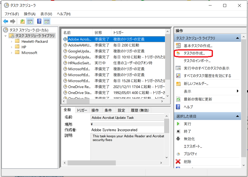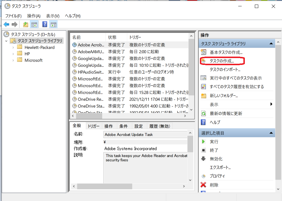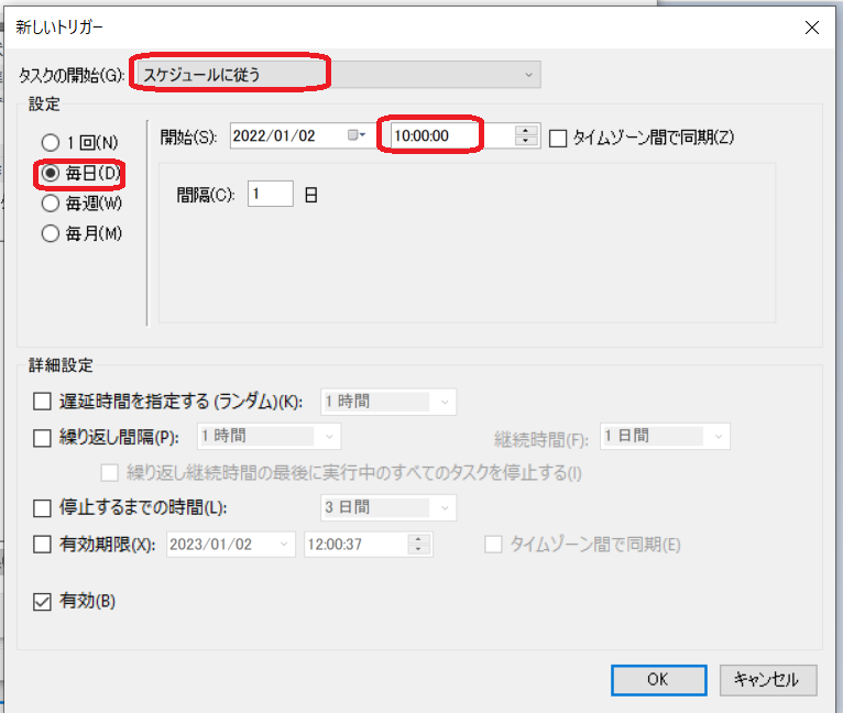 タスクスケジューラの設定