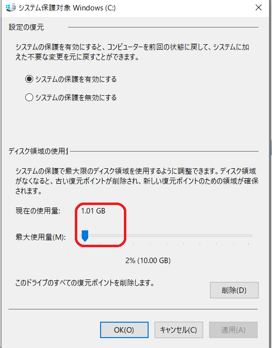 ↑ ここでバックアップ容量を調整