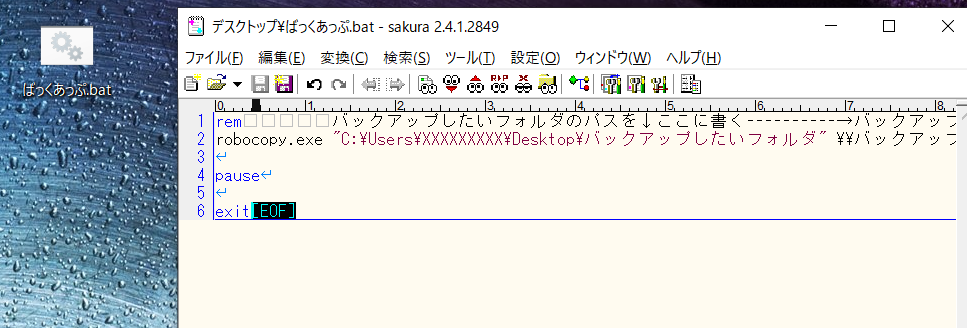 バッチファイルを作成