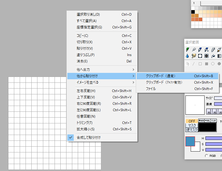 もう一つ立ち上げた方で他から貼り付け→クリップボード(アルファ有効)
