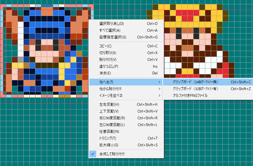 例えば↓こういう画像があったとして、16×16だけを抜き出して別ファイルに保存したいとする。