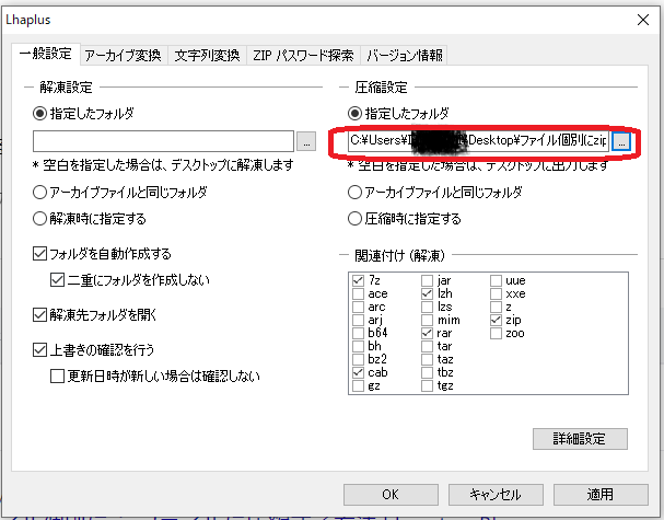 "C:\Program Files (x86)\Lhaplus\Lhaplus.exe" %1 /c:zip /od
