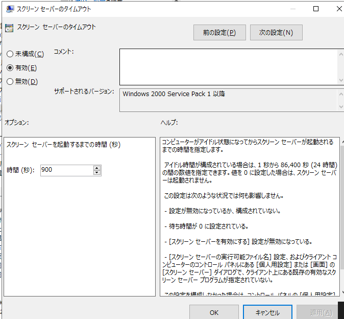 グループポリシー管理エディタで実際の起動時間やスクリーンセーバーの動画とかを指定する