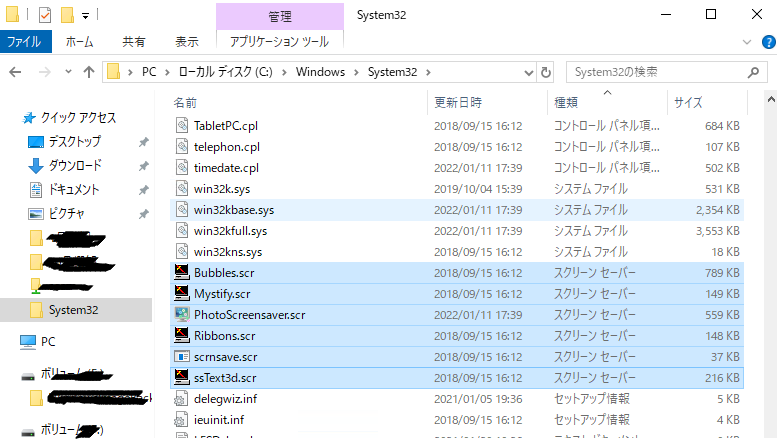 ↑ファイル名は C:\Windows\System32 の中の.scr拡張子(スクリーンセーバーファイル)を指定する。