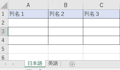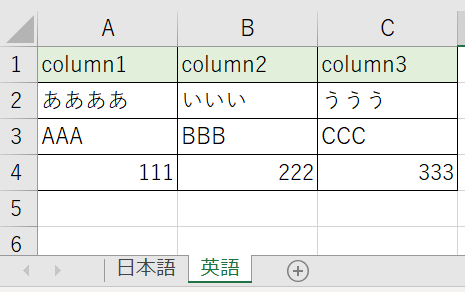 英語の表には、値が入っていて、日本語の表に転記したい。